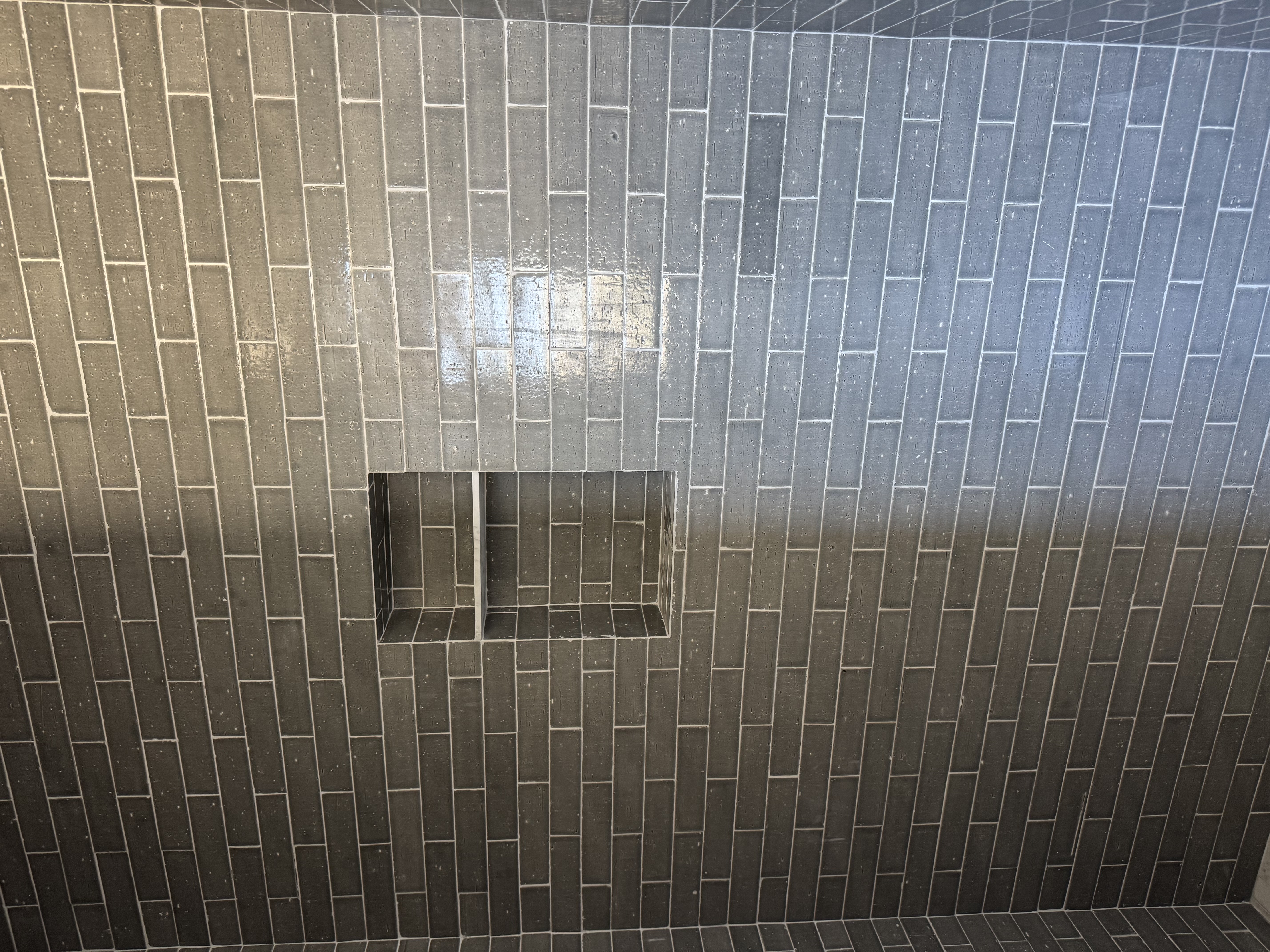 I found the Anthology tile while I was shopping at the Bedrosians showroom. They had it paired with the Anthology Matisse Habitat tile. I knew I had to use the two together! I have never done the ceiling in a different tile in my showers before. But I thought the Matisse Habitat tile would look so good up there, and I was right! I absolutely love having the contrasting ceiling. I am going to tile the rest of the bathroom ceiling in the tile! The two tiles go together perfectly. The Matisse tile would also work great in a shower niche, on the wall or as a trim around a shower.