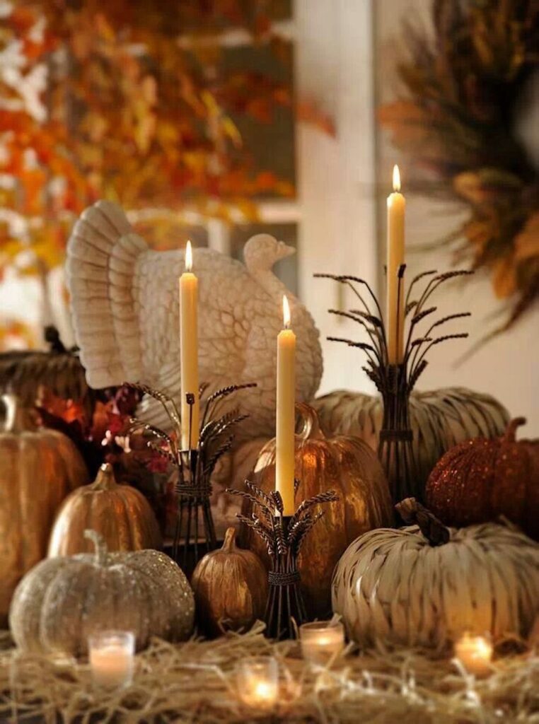 Lighting sets the mood, so bring in candles wherever you can. Taper candles in holders, votives, or even battery-operated ones are perfect for your Thanksgiving table. Mixing heights adds depth and visual interest.